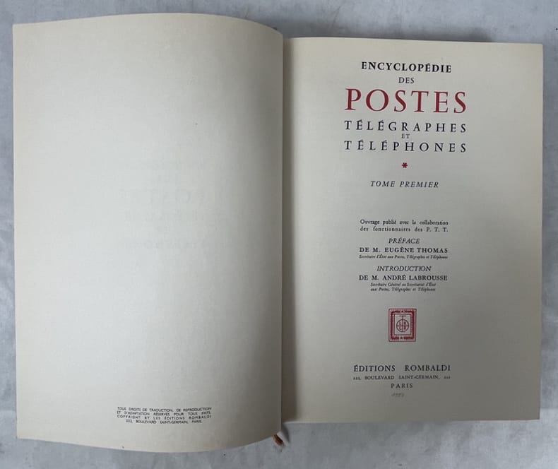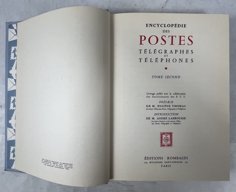 Paris, Rombaldi 1957 2 volumes. In-4 30 x 21 cm. Reliures éditeur toile, bleu-ciel, report titre doé sur les dos, premiers plats de couverture ornés d’une semeuse dorée, nombreuseures., planches en couleurs, tableaux, cartes, fac-similés, organigrammes repliés en noir et en couleurs, tables des matières.