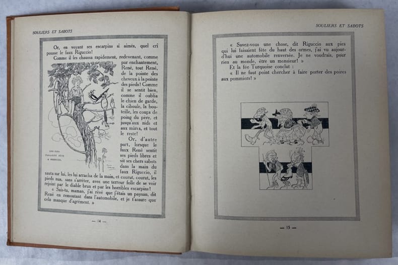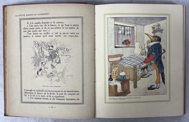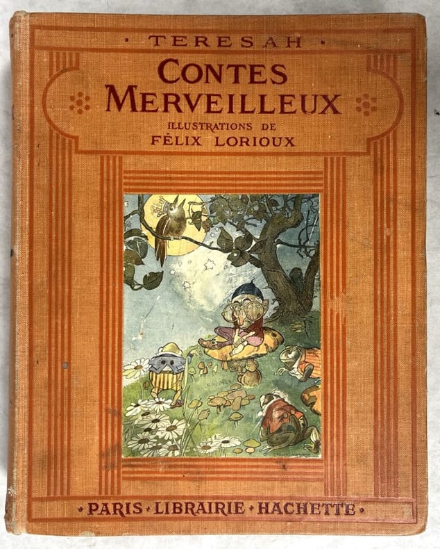 Paris, Hachette, impr. Paul Brodard, à Coulommiers 1914 In-8 24 x 19 cm. Cartonnage éditeur percaline mandarine, auteurre & titre en rouge sur le dos et le premier plat orné d’une vignette contrecollée, tête dorée, 10 illustrations hors-texte en couleurs et de nombreuses illustrations en noir in-texte de Félix Lorioux, 160 pp., table.