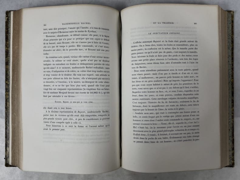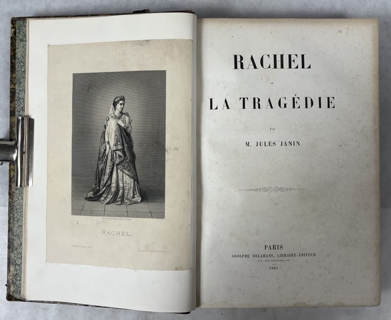 Paris, Adolphe Delahays 1861 In-4 27,5 cm x 18,5 cm. Reliure demi-chagrin à nerf encadrés de petits fers à froid, portrait de Rachel en frontispice sur Chine, 528 pp., table des matières.