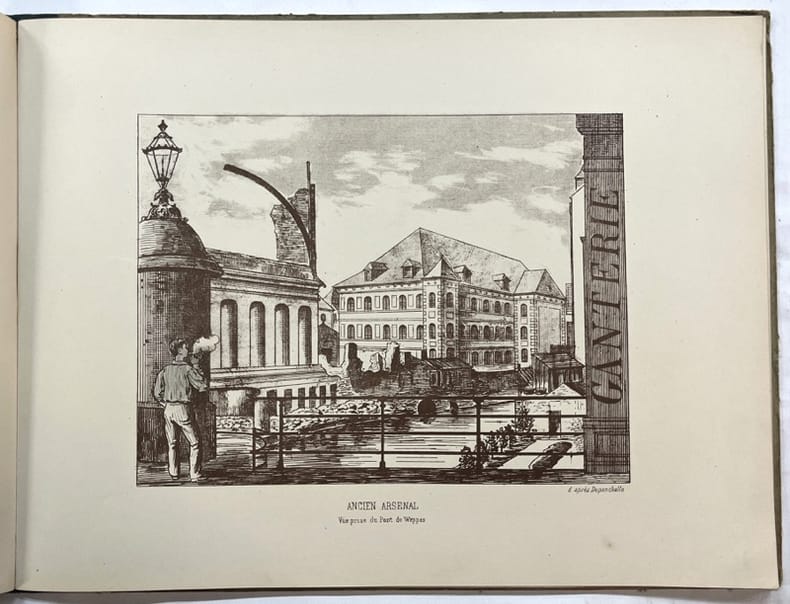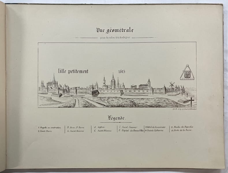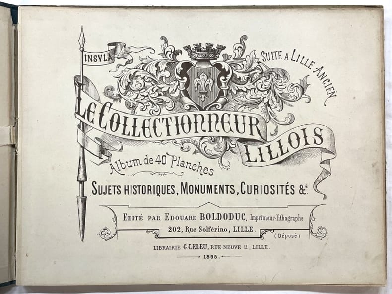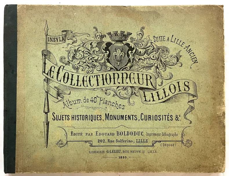 Lille, édouard Boldoduc, Imprimeur-lithographe 1895 In-4 à l’talienne 25 x 32 cm. Cartonnage édteur demi-toile verte, dos muet, premier et deuxième plats de couverture ornés, 40 planches. Ouvrage d’une relative rareté.