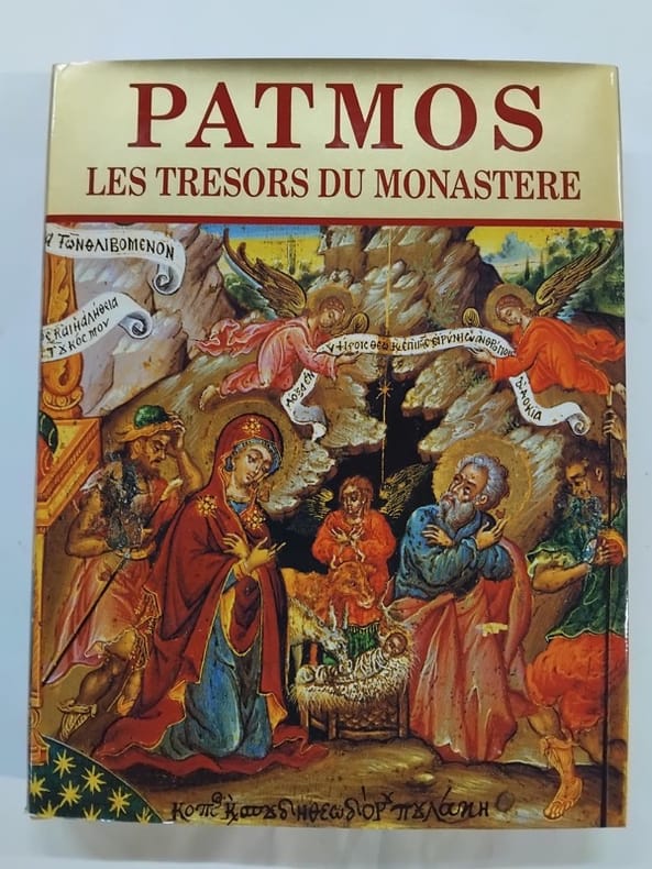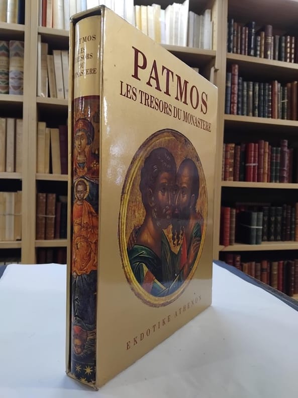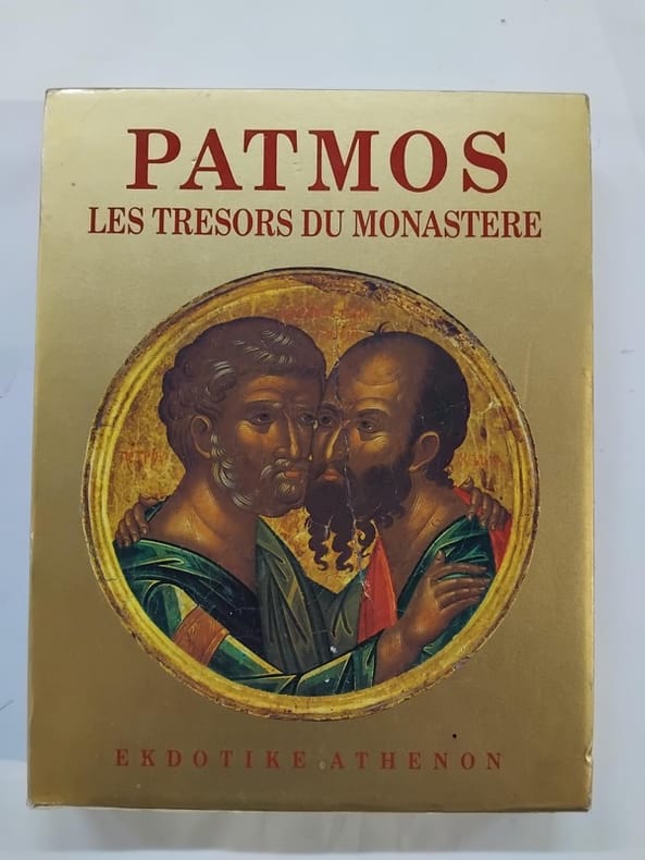 Relié toilé orange sous jaquette illustrée, 383 pages. Ekdotike Athenon 1988. Architecture, peintures murales, icones, parements brodés d'or, orfèvrerie religieuse, manuscrits enluminés, bibliothèque, archives, index..Très nombreuses illustrations couleur in et hors texte. Marques d'usure sur la jaquette. Fort volume de 2kg600 en bon état.