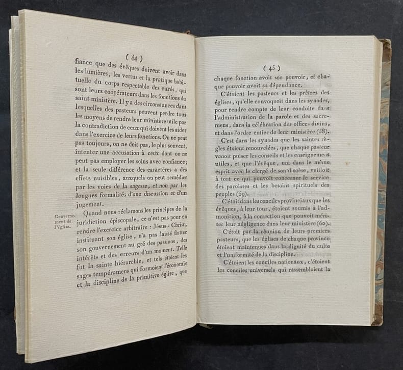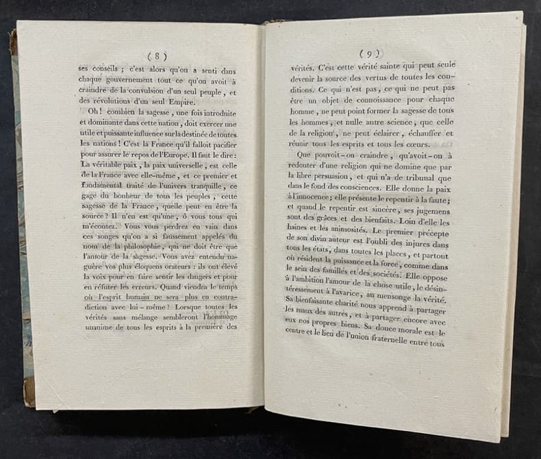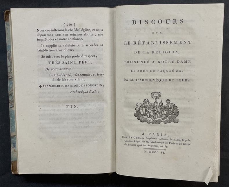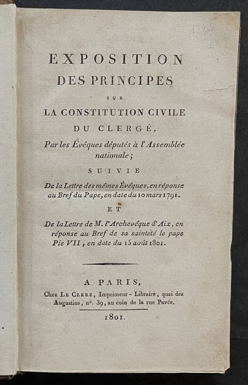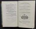 à Paris, chez Adrien Le Clere, imprimeur-libraire 1802 2 titres en 1 volume. In-8 20,5 x 12 cm. Reliure de l’époque demi-basane fauve à petits coins, dos lisse orné de roulettes dorées, pièce de titre maroquin IV-230-16 pp. Accroc de cuir au second plat à la charnière supérieur. Intérieur frais