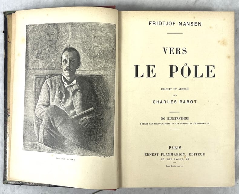 Paris, Ernest Flammarion 1907 Reliure demi-toile rouge, VIII-424 pp., portrait de Fridtjof Nansen en frontispice, 200 illustrations d’après les photographies et les dessins de l’explorateur, appendices, table des matières. Carnière fendillée. Exemplaire en bon état.