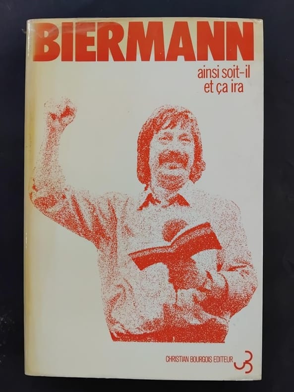 Editions Christian Bourgois 1978. In-8 broché de 280 pages au format 20 x 13 cm. Couverture à rabats avec photographie de Wolf Biermann prise par Isolde Ohlbaum. Dos resté carré avec de légères plissures du pelliculage. Plats et intérieur frais. Traduction et présentation par Jean-Pierre Hammer. Première et unique édition française, bilingue, avec le texte original en allemand et la traduction française en regard. En fin d'ouvrage quelques partitions sont reproduites. Rare édition originale en superbe état général.