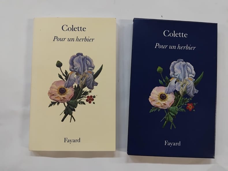Un des 30 exemplaires sur Japon nacré ; celui-ci, lettré ''i''. L'exemplaire s'orne en page de titre d'une grande aquarelle sur traits de crayon agrémentée de cet envoi autographe signé de Jean Commère, l'illustrateur : ''Pour Madame / Simone G*** / hommage / du / peintre / [signature]''. L'ouvrage est revêtu en regard du colophon des signatures autographes de l'artiste, de l'éditeur ainsi que de l'huissier de justice. Outre les 12 lithographies originales qu'il se doit de contenir, l'ouvrage recèle, sous chemises séparées : - en 8 épreuves, la décomposition d'une planche - 6 lithographies sur double-pages ; chacune signée à la mine de plomb par Jean Commère - 6 lithographies signées à la mine de plomb (ces 12 lithographies composant la suite, tirées sur grand vélin d'Arches). ''Jean Commère, natif d'Angers, participa aux Salons des Indépendants, d'Automne, des Peintres témoins de leur temps. Peintre de paysages et très souvent de scènes à personnages, il dessine sur la toile, plus qu'il ne peint, utilisant avec abondance des jaunes acidulés. Le dessin est traditionnel''. (in Bénézit). ''« En 1947, l’éditeur suisse Mermod proposa à Colette de lui envoyer régulièrement un bouquet de fleurs à chaque fois différentes ; Colette, en contrepartie, ferait le « portrait » de l’une ou l’autre de ces fleurs. Le résultat fut un petit recueil qui parut en 1948 sous le titre Pour un herbier à Lausanne chez Mermod, dans la collection ‘‘Le Bouquet’’ ».'' (Société des Amis de Colette). Bénézit III, Dictionnaire des peintres, p. 128 - Monod, Manuel de l'amateur de livres illustrés modernes, 3035. Petites altérations superficielles sur le coffret. Du reste, très belle condition.