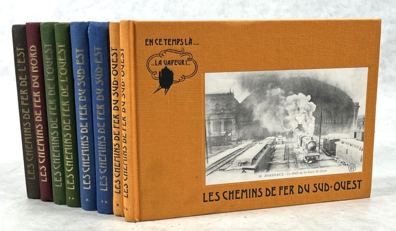 Comprend : 1. Les Chemins de fer de l'Est (1978) - 2. Les chemins de fer du Nord (1979) - 3. Les Chemins de fer de l’Ouest. I. Normandie (1980). II. De Paris à l’Océan (1986) - 4. Les Chemins de fer du Sud-Est. I. De Paris à Lyon et à la Savoie (1981). II. De Lyon à la Méditerranée (1982) - 5. Les Chemins de fer du Sud-Ouest. I. De Paris à Bordeaux et Massif Central (1983). II. De Bordeaux à Hendaye et à Perpignan (1985). Très bon état d’occasion