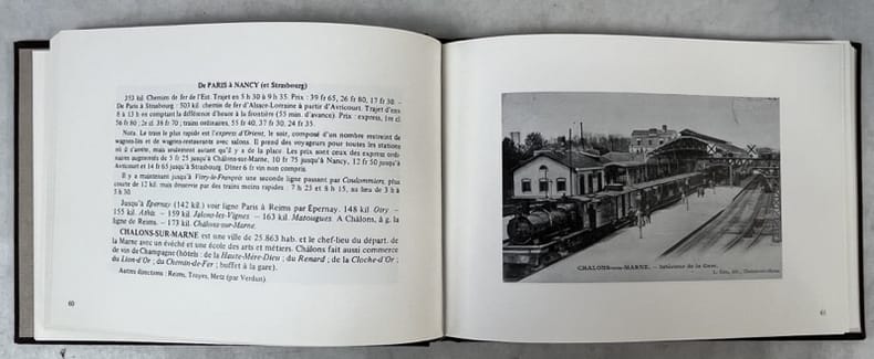 Paris, Rimage 1985 8 volumes.In-8 à l’italienne 15 x 20,5 cm. Reliures éditeur, vignette conrecollée sur les premiers plats de couverture, 160-159-160-160-182-182-158-160 pp., Les textes décrivant les itinéraires sont extraits des guides Baedecker, les cartes postales proviennent de la Vie du Rail et de collectionneurs, index des localités et des gares citées.