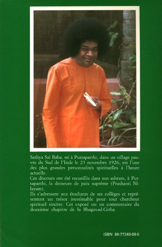 Sathya Saï Seva Fondation , 1987 - In-8 broché , couverture sobre blanche et titrage et vert , l'exemplaire est très agréable, on note cepdt une l'auréole d'une mouillure n'affectant en rien la pagination et peu profonde en second plat : Bon état et bel ensemble.
