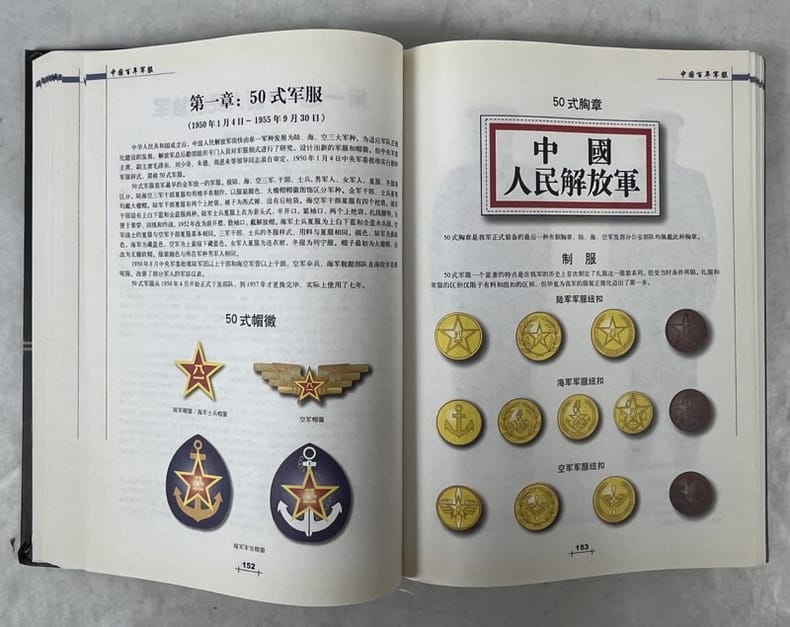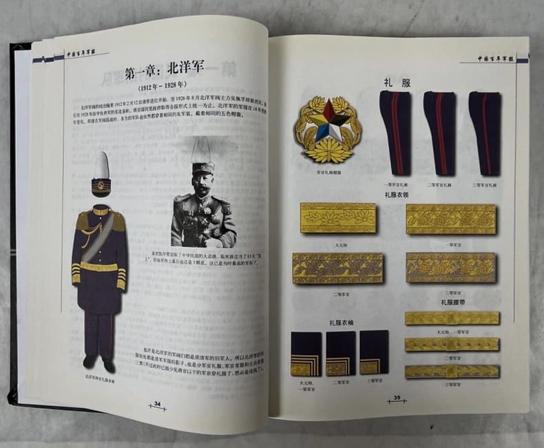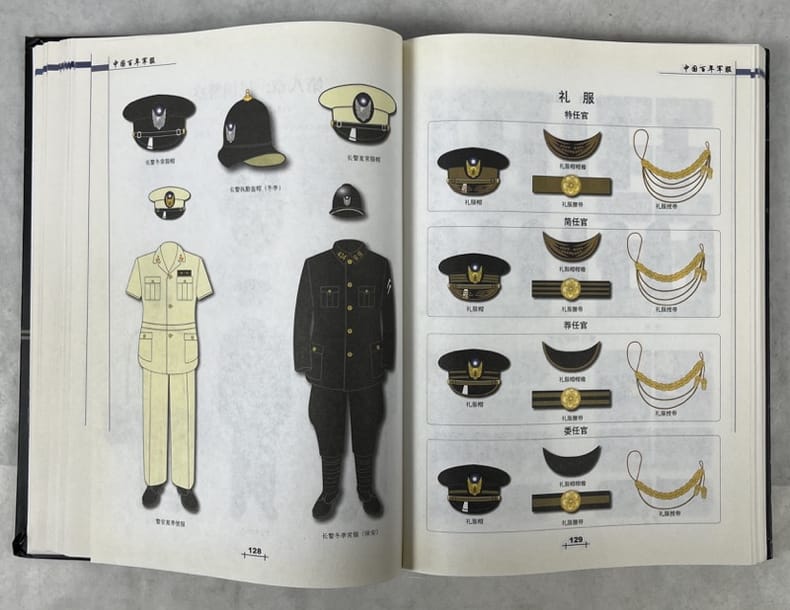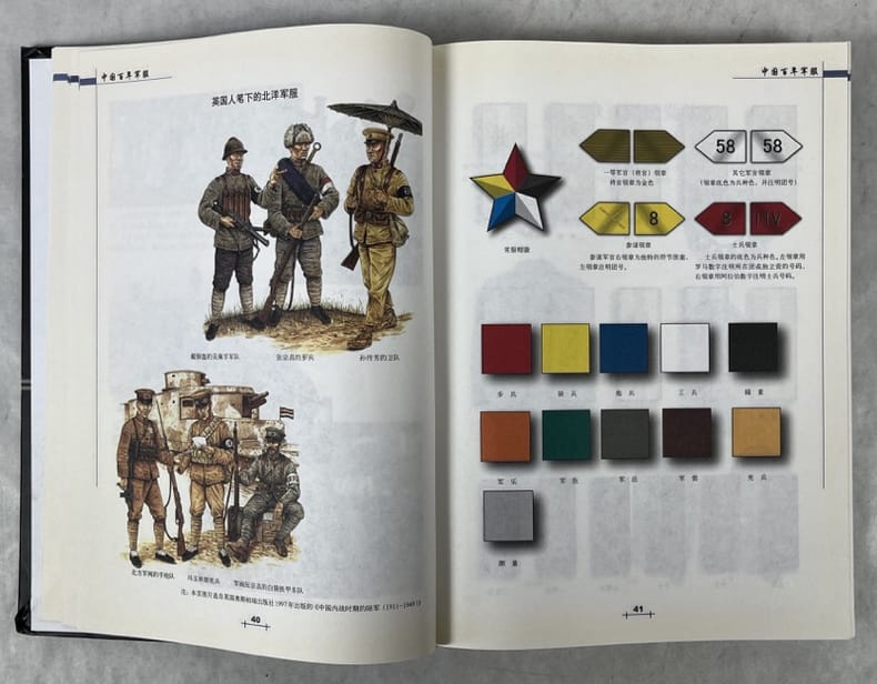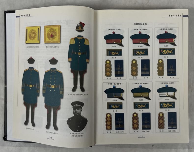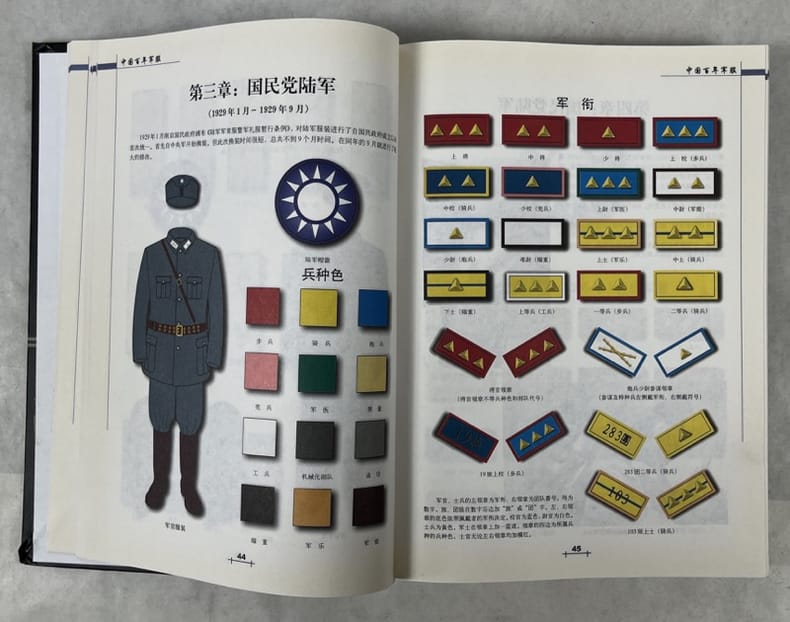 Beijing, Gold Wall Press 2005 In-4 26,5 x 18,5 cm; Reliure cartonnée illustrée en couleurs, 456 pp., illustréé principalement de planches en couleurs représentant les uniformes, grades et insignes l’armée chinoise de 1904 à 1999, table des matières. Exemplaire bon état.