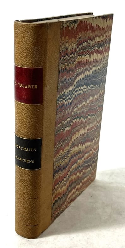 Paris E. Dentu 1865 in 8 (26,5x21,5) 1 volume reliure plein chagrin rouge de l'époque, dos à nerfs orné de riches caissons dorés, fine dentelle dorée intérieure, triple filet doré d'encadrement sur les plats, tête dorée, 284 pages, non rogné, usure avec petit manque sur l'angle supérieur du second plat. Charles Yriarte, Paris 1832-1898, homme de lettres, journaliste et dessinateur français. Exemplaire enrichi d'un envoi autographe signé par l'auteur, et d'un billet manuscrit de 6 lignes signé par l'auteur à l'attention d'un ami: Oscar Pierre Mathieu, 1845-1881, peintre français ('' exemplaire tiré avec l'Antigone complète [sans les suppressions], il n'en existe que douze ''), et un dernier feuillet manuscrit par l'auteur inséré in fine donne la clef des portraits de cet ouvrages. Exemplaire sur grand papier à toutes marges, imprimé sur papier de Hollande filigrané EB (non justifié). Bon exemplaire, et précieux document