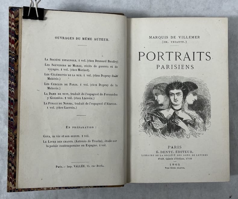 Paris, é. Dentu 1865 In-12 17,5 x 11 cm. Reliure demi-chagrinfauve, dos lisse, pièces auteur & titre maroquin rouge et noir, vignette au titre, [4]-284 pp., 1 vignette dans le texte, table des portraits. Exemplaire en bon état.