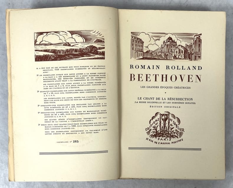 éditions du Sablier, impr. Albert Kundig, maître-imprimeur, à Genève 1937 2 volumes. In-4 25 x 16,5 cm. Brochés, couvertures beiges, dos muets, auteur & titre sépia sur les premiers plats de couverture, vignette de marque en pages de couverture et de titre, 613 pp. en pagination continue, notes, table des matières. Tirage à 1450 exemplaires. Celui-ci, N 265/1283 exemplaires, numérotés, sur vélin du marais.