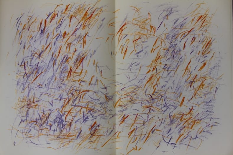Maeght 1968 In-folio, en feuilles sous couverture illustrée. 6 lithographies originales dont 2 en couverture ainsi que 7 fac-similés de dessins.Texte de Jean Tardieu, poèmes de René Char et André Frenaud. Couverture fanée, dos fendillée avec petits manques.