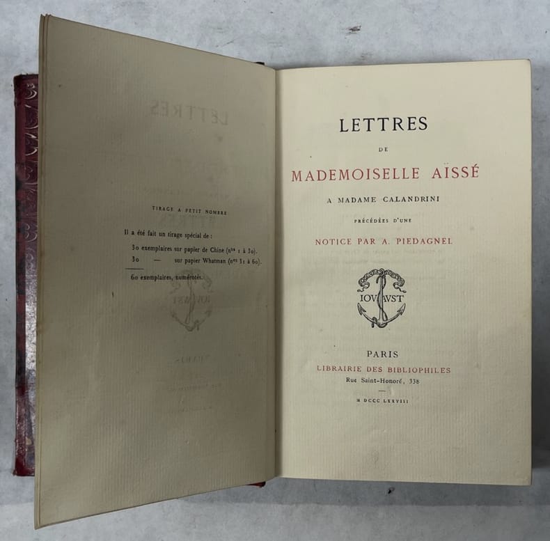 Fille d'un chef circassin, Charlotte-Elisabeth Aïsse (1693-1733) fut rachetée enfant à un marchand d'esclaves par le comte de Ferriol, ambassadeur de Louis XIV auprès de la Porte ottomane. Ramenée en France, elle y reçut une excellente éducation. Belle, très courtisée, elle rejeta la proposition de mariage du chevalier d’Aydie, par peur de compromettre la carrière de son bien-aimé. Elle livre son désarroi dans cette correspondance qui fut acclamée pour ses qualités littéraires. Bon état d’occasion