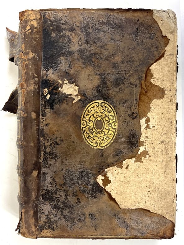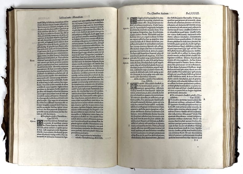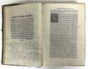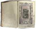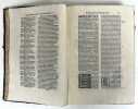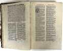 Parisiis, Iodoco Basio & Ioanni Paruo 1526 2 volumes sur 3. In-folio 34,5 x 22,5 cm. Reliures veau havane postérieures, dos à nerfs encadrés de petits fers, fer sur les plats de couverture, titres en rouge et noir avec encadrement et marque de Josse Bade gravés sur bois [25]-409-401 ff., à 2 colonnes, lettrines, tampons humides Grand Séminaire d’Amiens. Reliures en mauvais état, intérieur frais. Ouvrages peu courants.