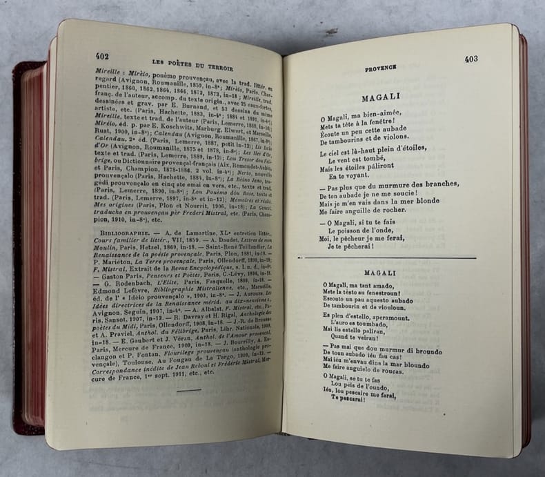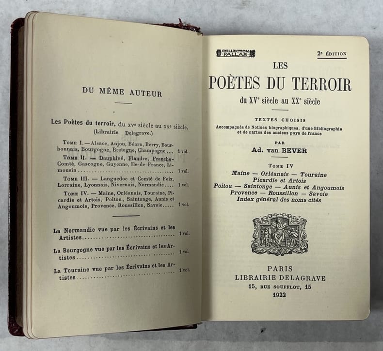 Paris, Delagrave, coll. « Pallas » 1922 In-16 16 x 9 cm. Reliure éditeur basane grenat, dos lisse avec titre doré, 546 pp., textes choisis accompagnés de notices biographiques, d'une bibliographie et de cartes des anciens pays de France, index des noms et des lieux cités, table des matières. Reliure frottée.