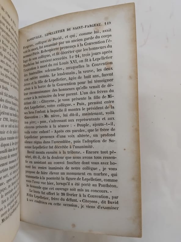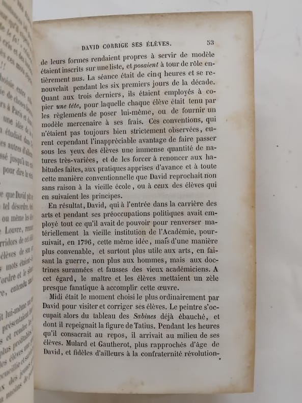 Mémoires fondamentaux sur David, l'élaboration des Sabines, des Thermopyles, l'affaire des prix décennaux, encore considéré comme un ouvrage de référence. Critique d’art et peintre, , étienne-Jean Delécluze (1781-183) élève de Louis David y décrit l’atelier où il fit son apprentissage. Bon état d’occasion