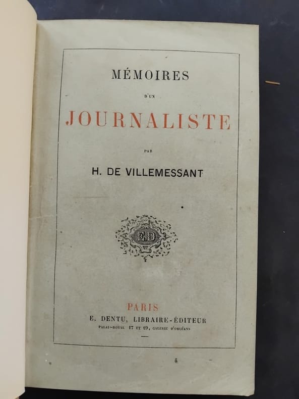 Bon Paginations diverses, 6 volumes. 1878-1884. Usure aux coiffes, rousseurs. Seul le premier volume est une réédition. Mémoires de ce journaliste et patron de presse (Le Figaro), Henri de Villemessant (1810-1879).