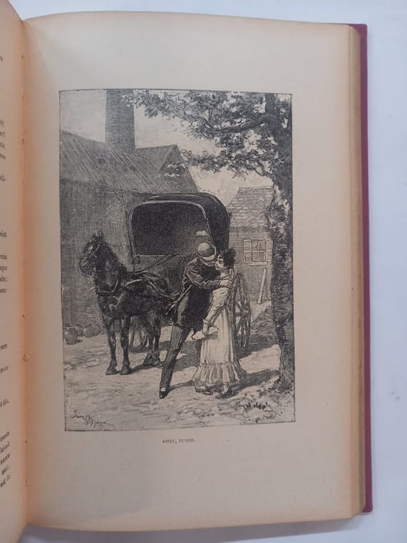 Paris, Hachette 1882 In-4 27,5 x 18,5 cm. Cartonnage éditeur percaline rouge, plats biseautés et dos richement décorés d’un décor or et noir, tranches dorées, 321 pp.,illustré de 52 compositions par Adrien Marie, table des matières. Exemplaire en bon état.