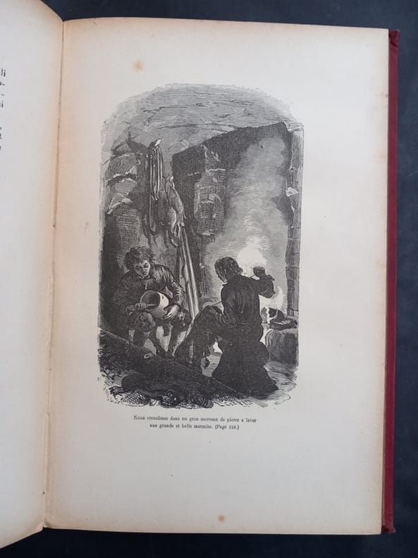 Librairie Hachette et Cie, coll. « Bibliothèque des écoles et des familles » 1891 In-4 cartonnage de l’éditeur pleine percaline rouge, 26 cm sur 17,4. 314 pages. Nombreuses illustrations en noir et blanc in et hors texte. rousseurs dans le texte, pages 79-80 avec déchirure sinon bon état d’occasion.