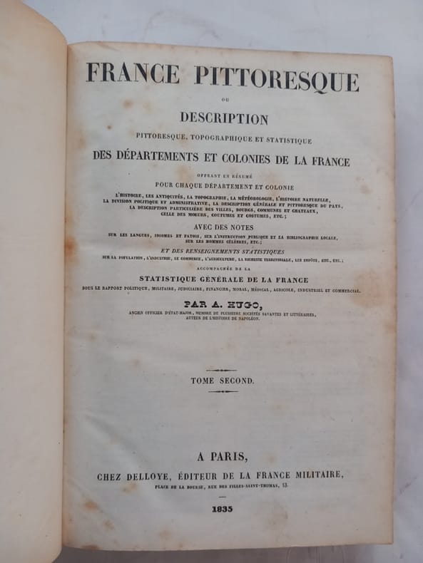Delloye éditeur de La France Militaire 1835 In-4 demi basane rouge, 27 cm sur 18,7. Texte sur deux colonnes, coins cassé au second plat avec manque rares rousseurs, très nombreuse cartes et gravures hors texte. En l’état.