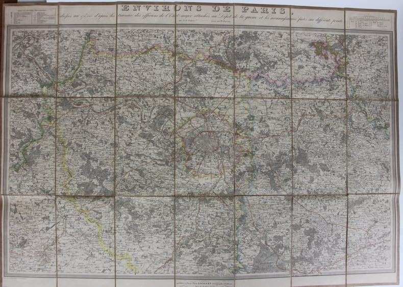 Paris :Longuet 1850 Carte gravée en couleurs ; 62 x 85 cm. Toilée, 21 volet.