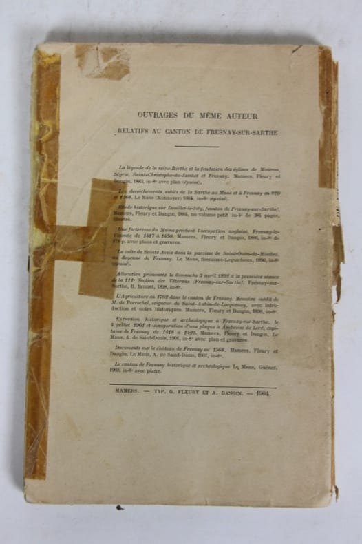 Mamers, Fleury & Dangin, Le Mans, de Saint-Denis, 1904 In-8 broché, 160 pp., illustrations dans le texte, 3 planches dont 1 frontispice. Dos cassé avec des manques, restaurations adhésives en seconde couverture. En l’état.
