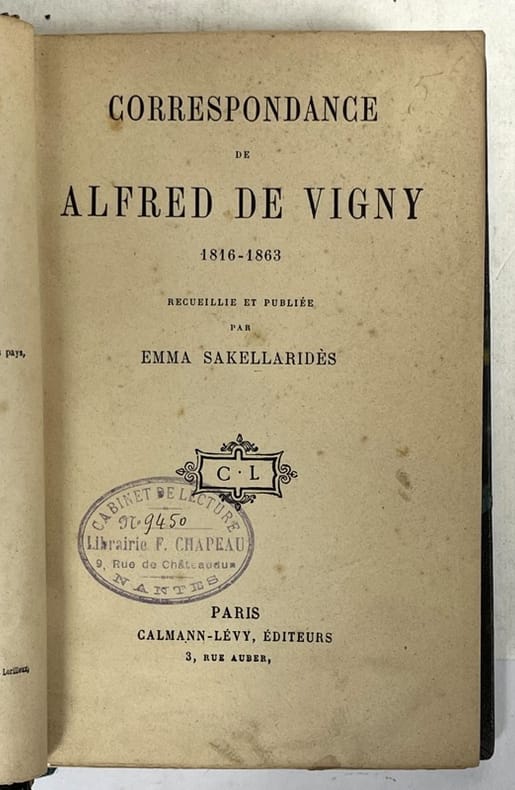 VIGNY Alfred de / SAKELLARIDÈS Emma ( correspondance recueillie et publiée par )