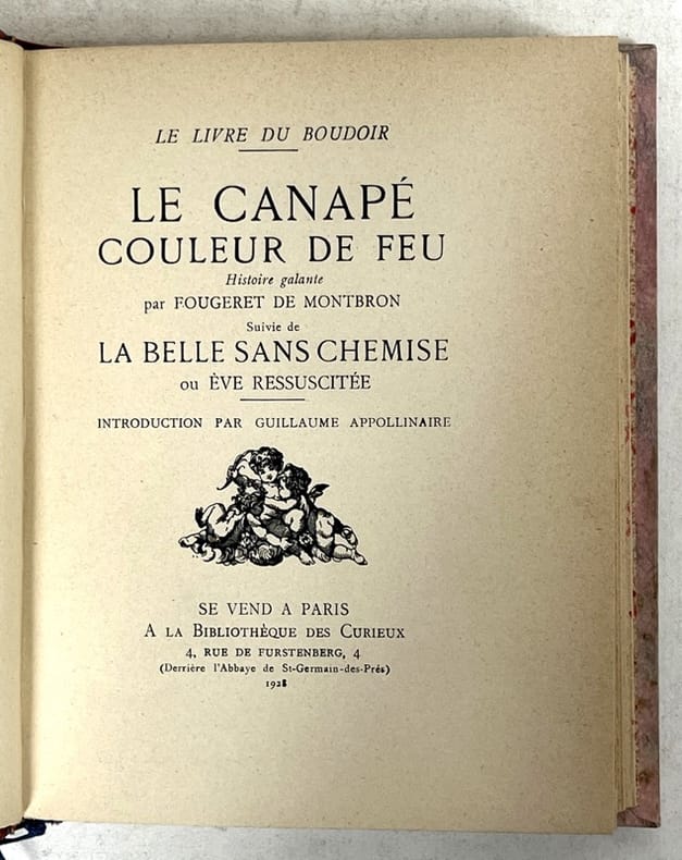 Paris, Bibliothèque des curieux, coll. « Le Livre du boudoir » 1928 In-16 16,5 x 12,5 cm. Reliure demi-chagrin havane, filets dorés, dos à nerfs encadrés de petits fers dorés, couvertures et dos conservés, III-143 pp., bandeaux et culs-de-lampe, table des matières.