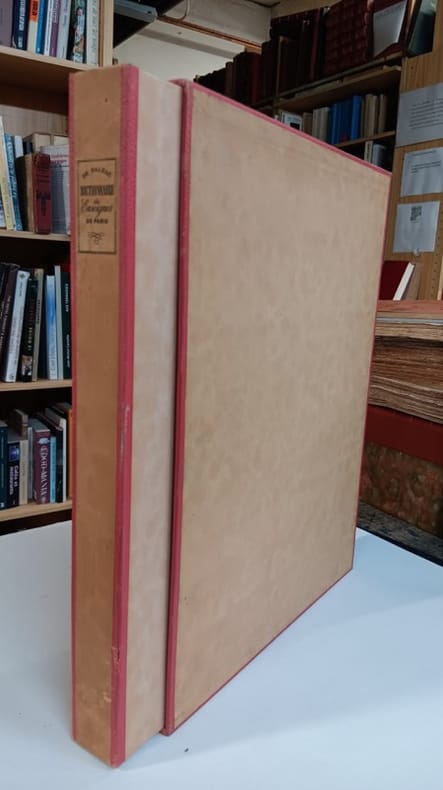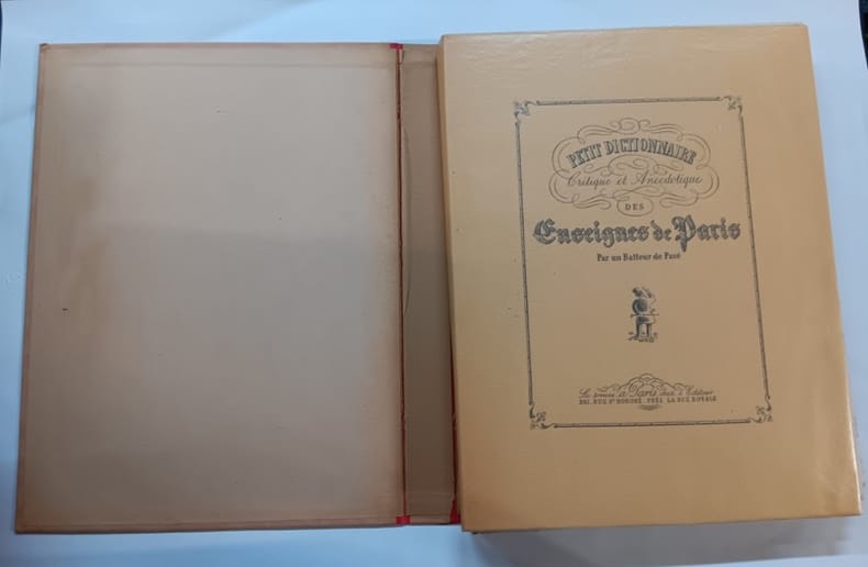 Nouvelle Société d'Edition 1945 In-folio 34 x 26 cm. En feuillets sous couverture rempliée, chemise et étui cartonnés, 93 pp, préface des éditeurs. Texte d'Honoré de Balzac, illustré de 42 planches représentent des enseignes fantaisistes, reproduites en couleurs, par un collège de 42 artistes différents. Tiré à 342 exemplaires numérotés, tous sur Pur fil Marais, exemplaire numéro numéro 314. Bon état d’occasion.