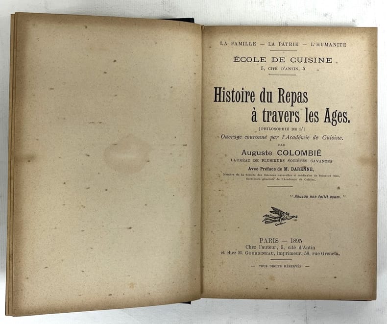 Quand il rédigea cet ouvrage, Pierre Colombié (1845-1920), cofondateur avec Joseph Favre et Émile Darene de l'Académie culinaire de France et de l'École de cuisine, était Chef des cuisines du prince et de la princesse F. de Hatzfeldt-Wildenburg. Bon état d’occasion