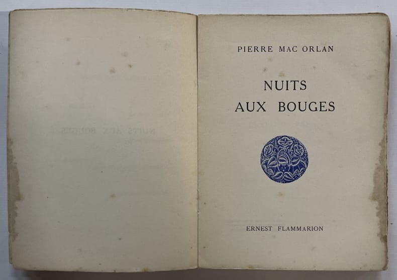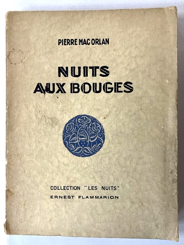 "Nuits aux bouges" rappelle une errance entre cabarets mal famés et estaminets de barrière, guinguettes interlopes et brasseries montantes ou maisons de femmes... Pierre Mac Orlan découvre cet univers de bars à matelots à Rouen au début du siècle. Il rencontrera plus tard André Salmon et Appolinaire au "Lapin Blan", rival apache du "Lapin agile", à Paris. Il poursuivra sa quête à Marseille, à Anvers...
