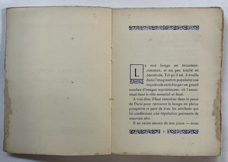 Paris, Ernest Flammarion, impr. Presses de l’Imprimerie Durand, à Chartres, coll. « Les Nuits » 1929 In-16 17 x 13 cm. Broché, couverture beige, auteur & titre en noir sur le dos et le premier plat de couverture orné d’un motif, 137 pp., frises bleues en tête et en pied de page, lettrines, table.