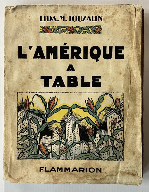 Couverture illustrée, non signée : ma‹s sur fond de gratte-ciel. Le livre est né de la difficulté qu'éprouvaient les maitresses de maisons américaines vivant en France à traduire pour leurs domestiques les recettes qui plaisaient à leur mari...