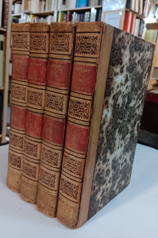 A Paris, Chez Lefèvre " Collection des Classiques françois ", 1824. 4 volumes in-8. Demi-cuir de Russie rouge, dos lisse, titre et tomaison en lettres dorées, frises dorées et filets dorés.Tome 1 XXXVI + 436. Portrait en frontispice - Tome 2 XXIV + 428. Tome 3 XVI + 493 et tome 4 et dernier 512 pages,