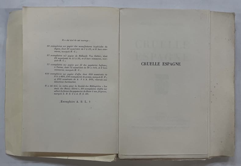 Paris, Plon 1937 In-8 20 x 13 cm. Broché, grandes marges conservées, couverture beige, auteur & titre en noir et rouge sur le dos et le premier plat de couverture, 254 pp., table des matières. édition originale. Exemplaire A. B. L. 7/60 tiré pour la société des bibliophiles “Les Amis des Beaux Livres” sur vélin à la forme des papeteries de Rives à son fligrane. Exemplaire en très bon état.
