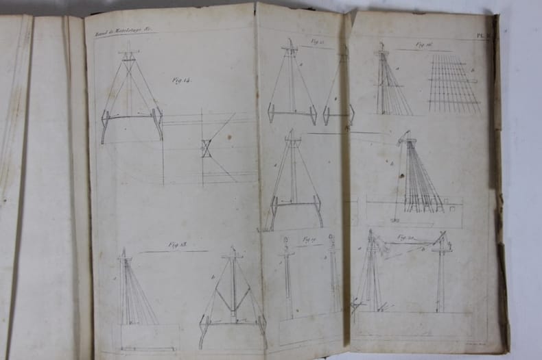 manuel de matelotage et de manoeuvre,imp royale,1835,edition originale,illustrée de 4 planches dépliantes.Très bon exemplaire