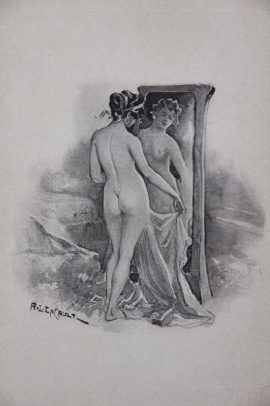 Offenstadt freres, Paris 1902 In-12, bradel demi-basane bleu nuit, 95 pp., compositions hors-texte de A.-L. Lacault. Reliure sensiblement frottée, premières gardes déliées.