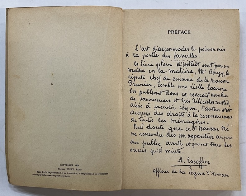Un des meilleurs ouvrages pour la cuisine de la mer. L’auteur fut chef de cuisine à Paris chez Prunier, connu pour l’excellence de ses recettes de poissons et crustacés, mais aussi pour l’originalité et la perfection de ses sauces ! Bon état d’occasion