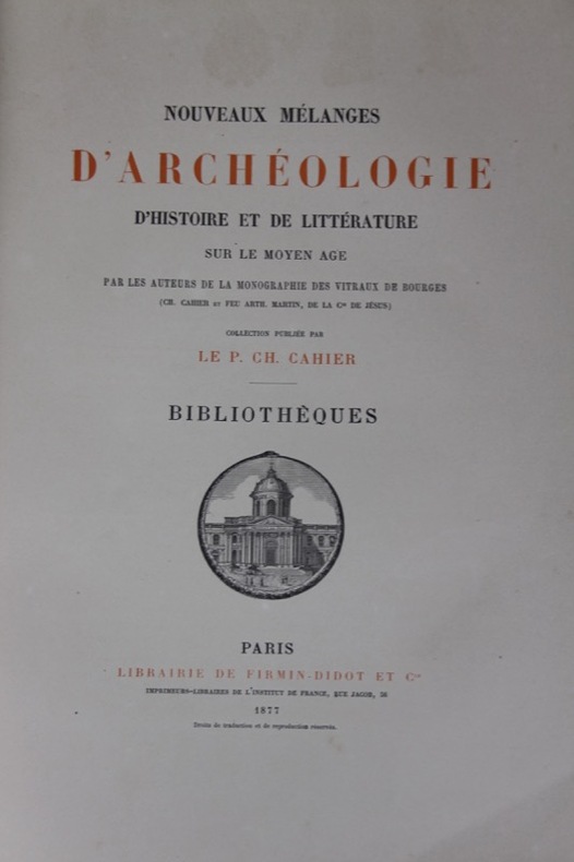 Paris, Firmin Didot 1877 xi + 351pp.avec figures dans le texte + 6 planches hors-texte (dont 2 en couleurs), 35cm., très bonne reliure moderne cart. (dos en toile rouge avec titre doré, br.orig.conservée), qqs.rousseurs et cachets, bon état, G81853