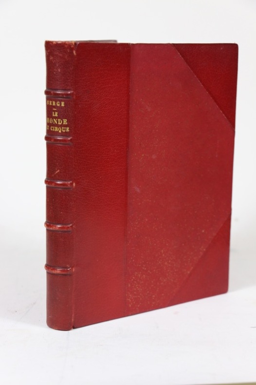 Librairie des Champs-Elysées 1939 In-8 demi-maroquin cerise à coins, dos à nerfs, filets à froid, couvertures illustrées et dos conservés, tête dorée, 205 pp. 67 dessins dans le texte, un à double page. Infimes frottements. Bel exemplaire