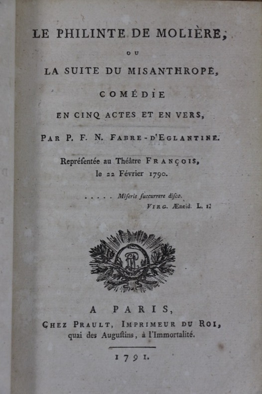 Editions originale des ces trois comédies, la dernière posthume. Le Philinte de Molière, pièce Révolutionnaire eut un succès considérable. Bon état d’occasion