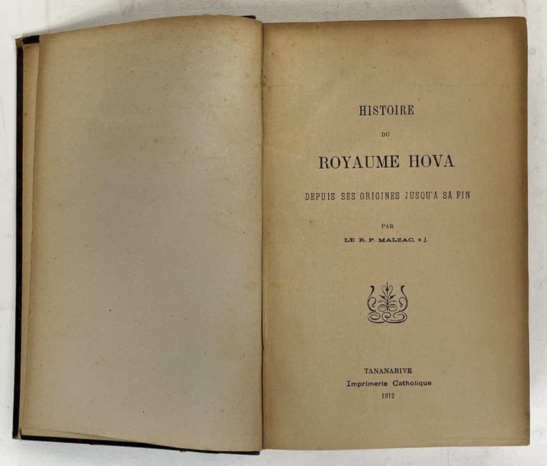 Tananarive, Imprimerie Catholique 1912 In-8 22,5 x 14 cm. Reliure demi-toile bordeaux, pièce de titre papier, 645 pp., table des matières. Exemplaire en bon état.