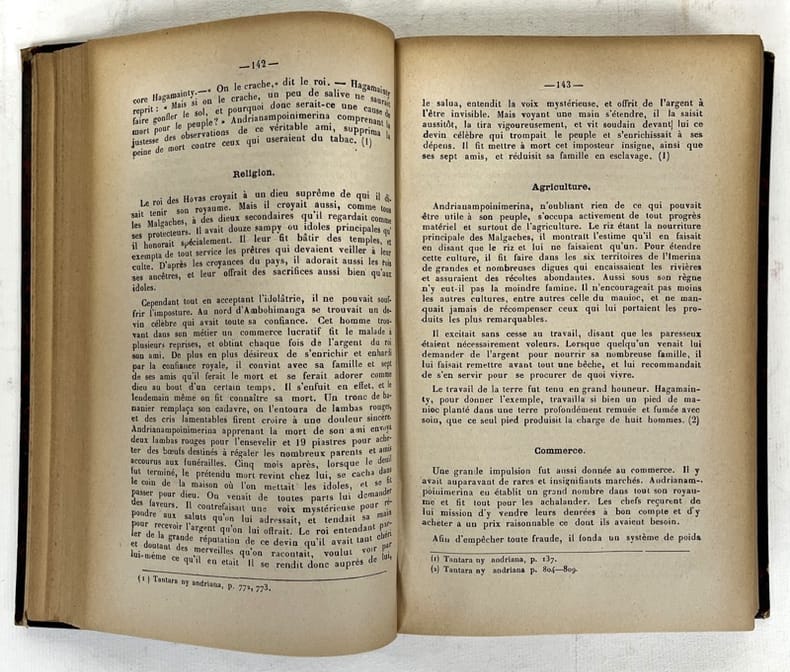 TANANARIVE. IMPRIMERIE CATHOLIQUE. 1930. IN-8 (15 X 24 CENTIMETRES ENVIRON) DE 645 PAGES, RELIURE D'EPOQUE 1/2 PERCALINE ROUILLE, TITRE IMPRIME SUR ETIQUETTE PAPIER CONTRECOLLEE SUR DOS LISSE. PETITE FENTE SANS GRAVITE SUR LE DOS, SINON BON EXEMPLAIRE.