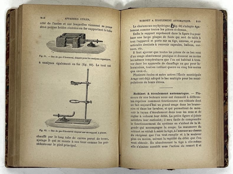 Paris, G. Masson, coll. « Petite bibliothèque de "la Nature" », n° 1, 2, 3, 4, 5 1897 5 volumes. In-16 16,5 x 10 cm. Reliures demi-toile bordeaux, dos ornés de filets et de petits fers dorés, pièces de titre verte, 388-342-335-XI-334-X-328 pp, avec figures dans le texte, index alphabétique.