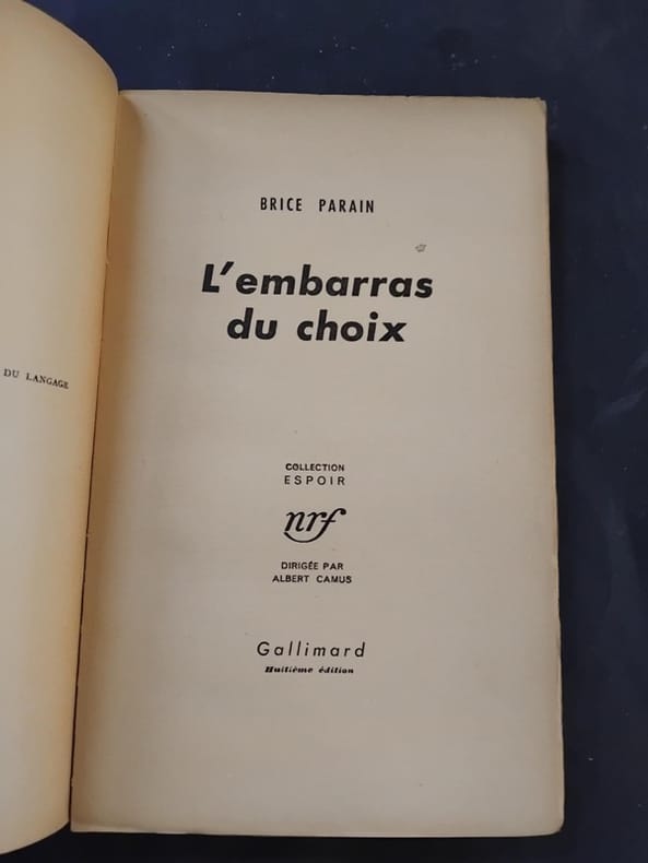 Gallimard, coll. « L’espoir » 1946 In-8 broché 23 cm sur 14,3. 202 pages. Couverture passée et frottée, dos passé, manque de papier en pied du dos, intérieur frais. État correct d’occasion.