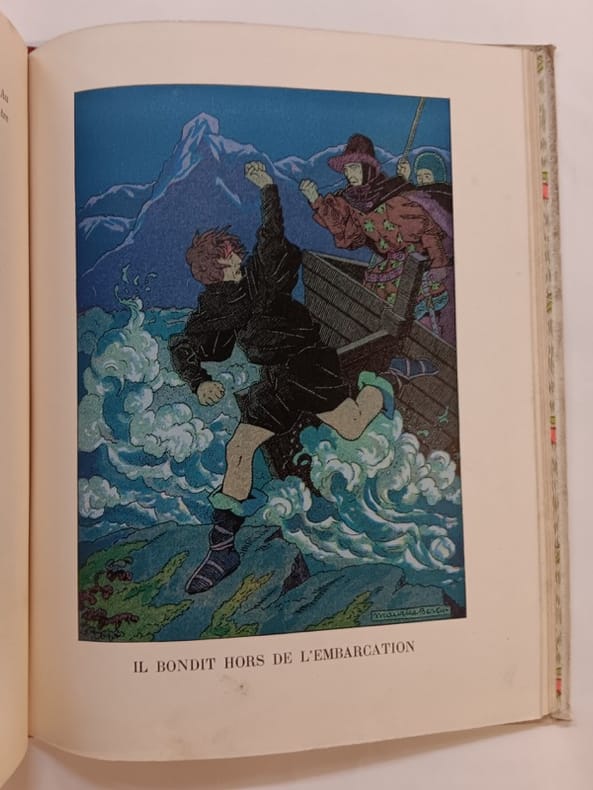 Tours, Maison Alfred Mame et Fils, 1933, in-4to, 72 p. rich. ill. en noir + 8 planches en couleurs, reliure en demi-toile, ill. en couleurs.