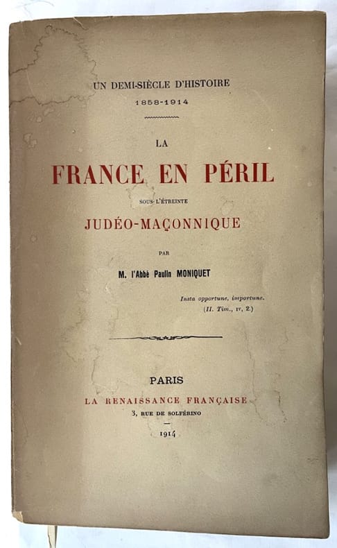 L'abbé Paulin Moniquet (Bagnères-de-Bigorre, 1838-1919) est un essayiste catholique conservateur français, connu pour ses opinions antimaçonniques. Bon état d’occasion