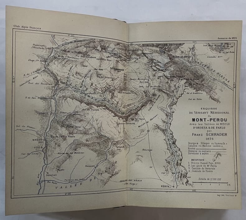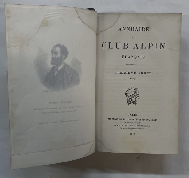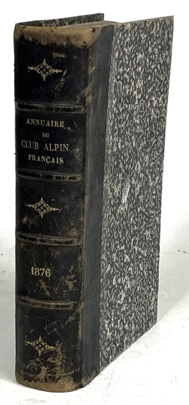 Paris, Club Alpin Français 1877 In-8 22,5 x 13,5 cm. Reliure demi-basane noire, dos à nerfs encadrés de petits fers dorés, XVI-624-78 pp., 4 cartes, 1 panorama, 88 illustrations, table méthodique, bibliographie, cartographie, liste des membres. Reliure frottée.