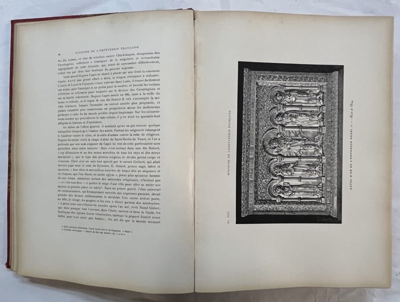 1ère édition de cette imposante histoire de l'orfèvrerie française, de l'Antiquité au XIXè siècle, par l'historien et critique d'art Henry HAVARD (1838-1921); illustré de vignettes et de 40 planches dont 10 en couleurs. Exemplaire relié, bien complet des 40 planches.
